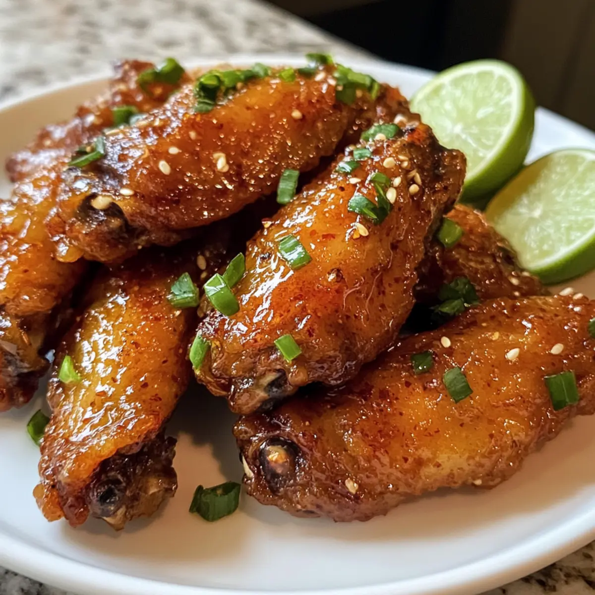 Jump to Recipe Print RecipeThe sound of sizzling chicken wings filling the kitchen transports me straight to a bustling street market in Vietnam. These Vietnamese Fish Sauce Fried Chicken Wings are not just a dish; they’re a culinary adventure bursting with the vibrant flavors of Southeast Asia. With just 16 minutes of cooking time, this recipe brings a delightful umami punch and a touch of sweetness that elevates ordinary wing nights into extraordinary feasts. Plus, the crispy coating and savory glaze make them ideal for family dinners or as show-stopping appetizers at your next gathering. Are you ready to transform weeknight meals or impress your friends with this quick and easy recipe? Let’s dive into this wing wonder! Why are these wings a must-try? Crispy Perfection: Each wing is enveloped in a golden, crunchy coating, delivering that irresistible crunch in every bite. Umami Richness: The authentic Vietnamese fish sauce adds a depth of flavor that transforms basic fried chicken into a flavor-packed delight. Quick & Easy: With a total cook time of only 16 minutes, you can whip up this impressive dish without fuss — ideal for busy weeknights or spontaneous gatherings. Versatile Serving: Pair them with steamed rice and stir-fried vegetables for a complete meal, or serve them as a crowd-pleasing appetizer at your next party! Looking for something else to spice up your dinner routine? Check out my recipe for Air Fryer Wings or consider making a fresh Vietnamese Chicken Salad for a deliciously balanced meal! Vietnamese Fish Sauce Fried Chicken Wings Ingredients For the Wings • Chicken Wings – Choose bone-in, skin-on for the best crispy results. • Garlic Powder – Adds depth and flavor; fresh garlic can be used if preferred. • Salt – Enhances the overall flavor; adjust this to your taste. • Ground Black Pepper – Delivers a mild spiciness; feel free to substitute with white pepper. • Chicken Bouillon Powder – Boosts umami flavor easily; additional salt can work in a pinch. • Cornstarch – Essential for that crispy coating; don’t skip it for the best texture. For the Glaze • Fish Sauce – This is essential for authentic Vietnamese flavor; use high-quality Vietnamese fish sauce for the best taste. • Sugar – Balances the saltiness; brown sugar can provide a richer flavor. • Lime Juice – Adds brightness to the glaze; white vinegar is a possible substitute but may change the flavor profile. Enjoy crafting these delicious Vietnamese Fish Sauce Fried Chicken Wings that will surely impress anyone at your table! Step-by-Step Instructions for Vietnamese Fish Sauce Fried Chicken Wings Step 1: Prep Chicken Begin by cleaning your chicken wings thoroughly. Rinse the wings under cold water, then scrub with coarse salt to remove impurities and odors. After rinsing them again, pat the wings dry with paper towels. This important first step guarantees that your Vietnamese Fish Sauce Fried Chicken Wings will be crispy and flavorful. Step 2: Marination In a large mixing bowl, toss the cleaned chicken wings with garlic powder, salt, ground black pepper, and chicken bouillon powder. Use your hands to ensure that each wing is evenly coated in these flavorful seasonings. Cover the bowl and let the wings marinate for about 10 minutes to enhance their taste, allowing the spices to penetrate the meat. Step 3: Coating Add cornstarch to the marinated wings and mix until they are lightly coated. This coating is crucial, as it will create that signature crispy texture once fried. Ensure every wing is evenly dusted with cornstarch, which will help achieve the perfect crunch in your Vietnamese Fish Sauce Fried Chicken Wings. Step 4: Fry Chicken Heat oil in a deep fryer or a heavy skillet to 350°F (175°C). Carefully add the wings in batches, making sure not to overcrowd the pan, which can lower the oil temperature. Fry them for about 8 minutes or until they turn a beautiful golden brown and are cooked through. Use a slotted spoon to remove the wings and let them drain on paper towels. Step 5: Prepare Glaze In a small saucepan, combine fish sauce, sugar, and lime juice over medium heat. Stir the mixture continuously until the sugar fully dissolves, creating a smooth glaze. This step infuses the Vietnamese Fish Sauce Fried Chicken Wings with that rich, umami flavor and perfectly balances saltiness with a touch of sweetness. Step 6: Coat Wings Once the wings are fried and slightly cooled, transfer them into a large mixing bowl. Pour the freshly made glaze over the wings and gently toss them until they are well-coasted. Ensure every wing is evenly glazed, soaking up that delicious flavor, making your Vietnamese Fish Sauce Fried Chicken Wings truly irresistible. Step 7: Serve Arrange the wings on a serving platter, optionally garnishing with fried garlic for added flavor and crunch. Serve your Vietnamese Fish Sauce Fried Chicken Wings hot, and don’t forget to enjoy them with a side of steamed rice and stir-fried vegetables for a complete meal experience that everyone will love! Make Ahead Options These Vietnamese Fish Sauce Fried Chicken Wings are perfect for meal prep enthusiasts! You can marinate the chicken wings up to 24 hours in advance, allowing the flavors to deeply penetrate the meat for maximum umami goodness. Simply toss the cleaned wings with the spice blend and refrigerate in an airtight container. The cornstarch coating can also be prepared ahead by dusting the wings before frying and storing them separately in the fridge for a crispy finish. When you’re ready to cook, just fry the wings, prepare the glaze, and toss them together for a restaurant-quality dish that is just as delicious but saves valuable time during busy weeknights! Storage Tips for Vietnamese Fish Sauce Fried Chicken Wings Fridge: Store leftover wings in an airtight container for up to 3-4 days. This helps maintain their flavor and moisture while preventing any contamination. Freezer: For longer storage,