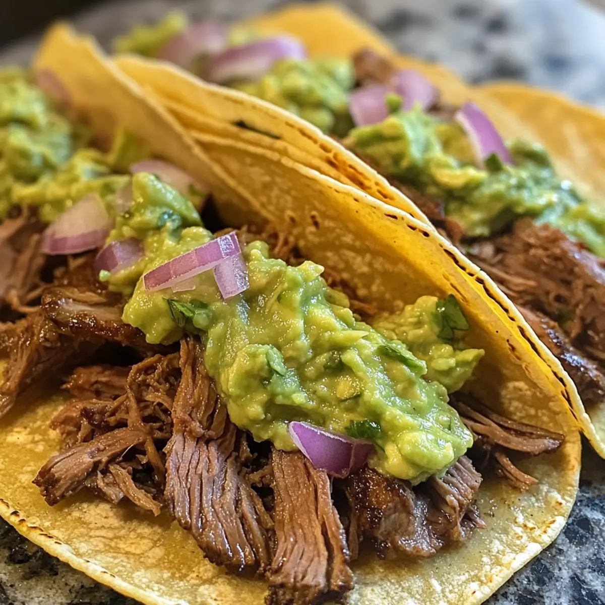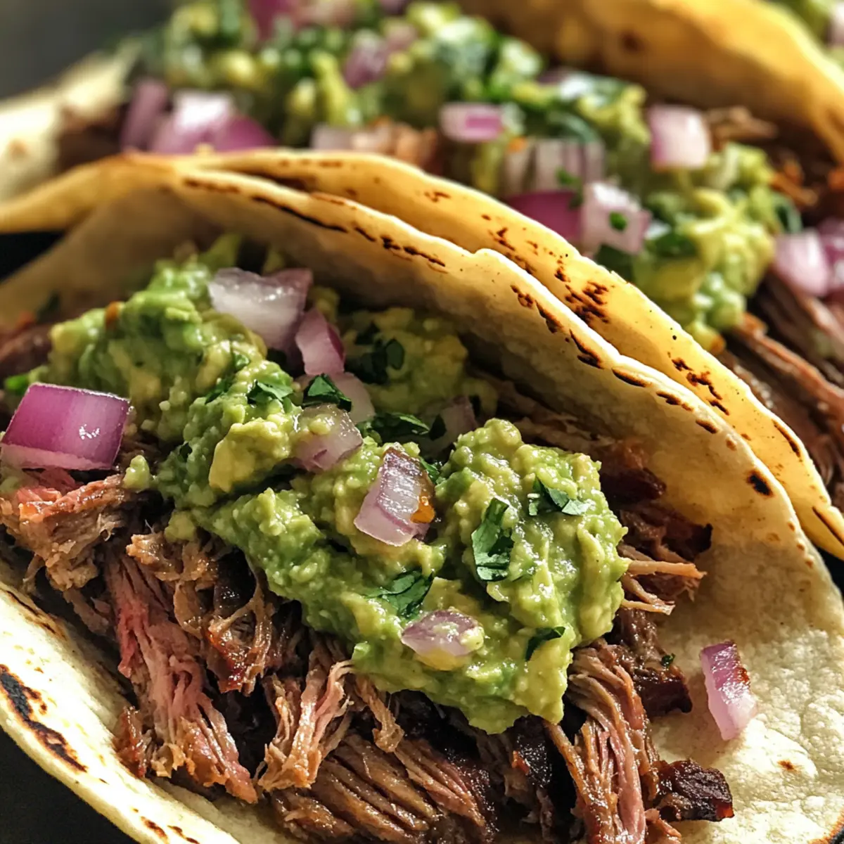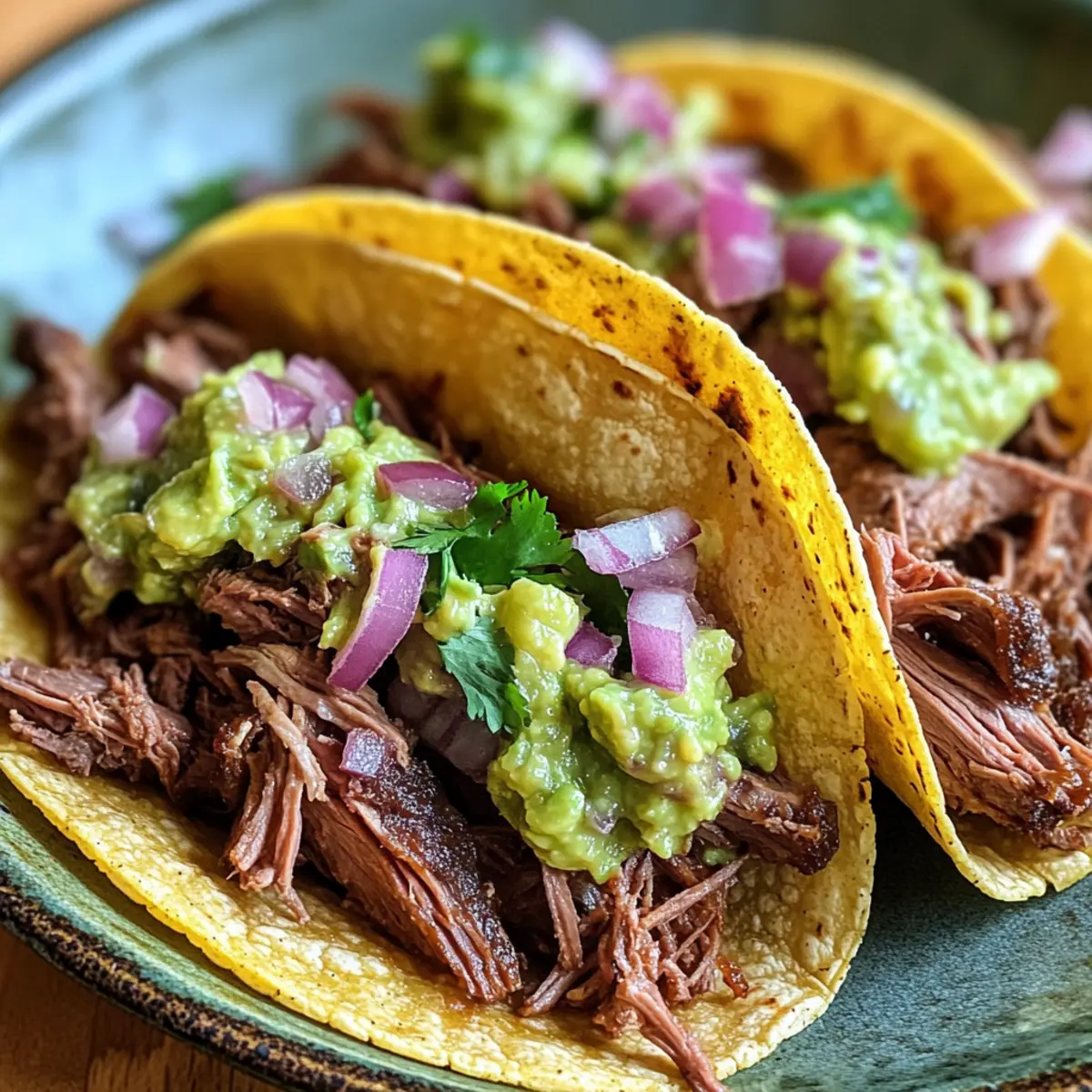 Jump to Recipe Print Recipe“What’s better than a tender, savory taco? How about one made with the incredible flavors of slow-cooked chuck roast? These Viral Chuck Roast Tacos have become a go-to for my weeknight dinners, and it’s easy to see why. Not only do they deliver sensational taste with minimal prep, but they’re also completely customizable to suit everyone at the table—perfect for gatherings or a cozy family meal. Picture yourself indulging in every hearty bite, topped with creamy guacamole and your favorite fresh toppings. Trust me, once you’ve experienced these tacos, you’ll have a new favorite recipe in your repertoire! So, are you ready to give your taco night an unforgettable twist?” Why are These Tacos So Irresistible? Simplicity is key: With easy-to-follow steps, even novice chefs can master these tacos without stress. Flavor explosion: The slow-cooked chuck roast becomes ultra-tender and boasts deep, savory flavors that please everyone. Customizable options: From salsas to toppings, make it your own! You can experiment with variations like adding Jalapeno Popper Roasted or Fried Chicken Ranch sides for a fun twist. Crowd-pleaser: Perfect for gatherings, these tacos are sure to impress family and friends alike. Healthy indulgence: Packed with protein and can be tailored to fit gluten-free diets with the right tortillas. Leftover magic: The flavors deepen the next day, making them an excellent choice for meal prep! Viral Chuck Roast Tacos Ingredients For the Chuck Roast • Chuck Roast – the star of the show, it becomes melt-in-your-mouth tender with slow cooking; it’s budget-friendly too! • Salt – essential for enhancing flavor; I recommend kosher salt for even seasoning. • Pepper – adds depth and balance; freshly cracked is best for a flavor boost. • Taco Seasoning – use store-bought or homemade for a customizable flavor profile that perfectly complements the beef. For the Guacamole • Avocados – the base for your creamy guacamole; choose ripe ones for the best texture. • Lime Juice – adds brightness to the guacamole; adjust to taste for refreshing acidity. • Orange Juice – optional, but it can provide a hint of sweetness and deeper flavor. • Red Onion – gives a crunch and sharpness; swap with green onion for a milder touch. • Cilantro – a fresh herb that elevates the guacamole; omit if it’s not your favorite. For the Tacos • Tortillas – go for organic, non-GMO corn or cassava flour for a gluten-free taco experience. • White Onion – finely chopped for texture and flavor; it lets the entire taco shine. • Salsa Macha – a delicious topping; feel free to substitute with your favorite salsa for varied flavor. These Viral Chuck Roast Tacos come together beautifully with these fresh ingredients, promising an unforgettable meal that everyone will love! Step‑by‑Step Instructions for VIRAL CHUCK ROAST TACOS Step 1: Preheat Your Oven Begin by preheating your oven to 325°F (163°C). This temperature is crucial for transforming the chuck roast into an irresistible, tender filling for the VIRAL CHUCK ROAST TACOS. Set out your Dutch oven or heavy baking dish, ready to embrace the flavors to come. Step 2: Season the Chuck Roast Generously season both sides of the chuck roast with kosher salt, pepper, and your preferred taco seasoning. Be sure to rub the spices in thoroughly for maximum flavor. This step sets a delicious foundation for your tacos, so don’t rush—take your time to enhance the beef’s natural richness. Step 3: Bake the Chuck Roast Place the seasoned chuck roast in the preheated Dutch oven, cover it with a lid or aluminum foil, and let it bake for about 1 hour per pound. For a 4 lb roast, you can expect a cooking time of approximately 4 hours. As it cooks, the meat will become incredibly tender, easily shredding with just a fork. Step 4: Shred the Cooked Meat Once the roast is fork-tender, remove it from the oven and carefully shred the meat into bite-sized chunks using two forks. If it doesn’t shred easily, return it to the oven and let it cook for an additional 30 minutes. This step is essential for ensuring your tacos have that perfect, melt-in-your-mouth texture. Step 5: Crisp the Shredded Meat Increase the oven temperature to 425°F (218°C). Toss the shredded beef in the rendered fat from the roast, then spread it evenly in the Dutch oven. Bake uncovered for 20-25 minutes, or until the edges of the meat are crispy and golden brown, adding a delightful crunch to your VIRAL CHUCK ROAST TACOS. Step 6: Prepare the Guacamole While the meat is crisping, get started on the guacamole. In a mixing bowl, mash ripe avocados, then mix in lime juice, orange juice (if using), salt, pepper, chopped red onion, and cilantro. Aim for a creamy consistency with fresh flavors; this will beautifully complement the savory chuck roast in your tacos. Step 7: Heat the Tortillas In a dry skillet over medium heat, warm your tortillas for about 30-45 seconds on each side until they’re pliable and slightly charred. This simple step enhances the tortillas’ flavor and makes them the perfect vehicle for your delicious VIRAL CHUCK ROAST TACOS. Step 8: Assemble the Tacos Now it’s time to build your tacos! Layer the crispy shredded chuck roast onto the warm tortillas, adding generous spoonfuls of guacamole and your choice of toppings like white onion and salsa macha. Customize them to your liking and get ready to savor bites of tender, flavorful tacos bursting with goodness. Step 9: Serve and Enjoy Once assembled, serve the tacos immediately while they’re warm. Embrace the inviting aromas, and watch as everyone gathers around to indulge in these incredible VIRAL CHUCK ROAST TACOS. They’re perfect for sharing and celebrating the joy of homemade cooking! What to Serve with Viral Chuck Roast Tacos Imagine a vibrant table adorned with glorious flavors to elevate your taco night into an unforgettable feast. Spicy Black Beans