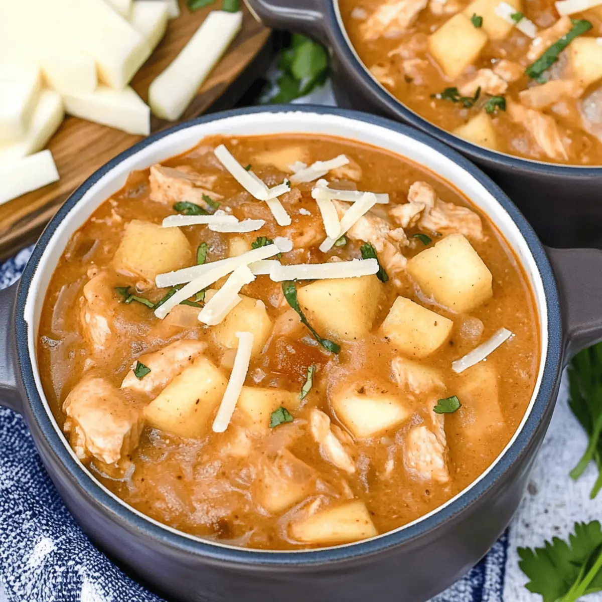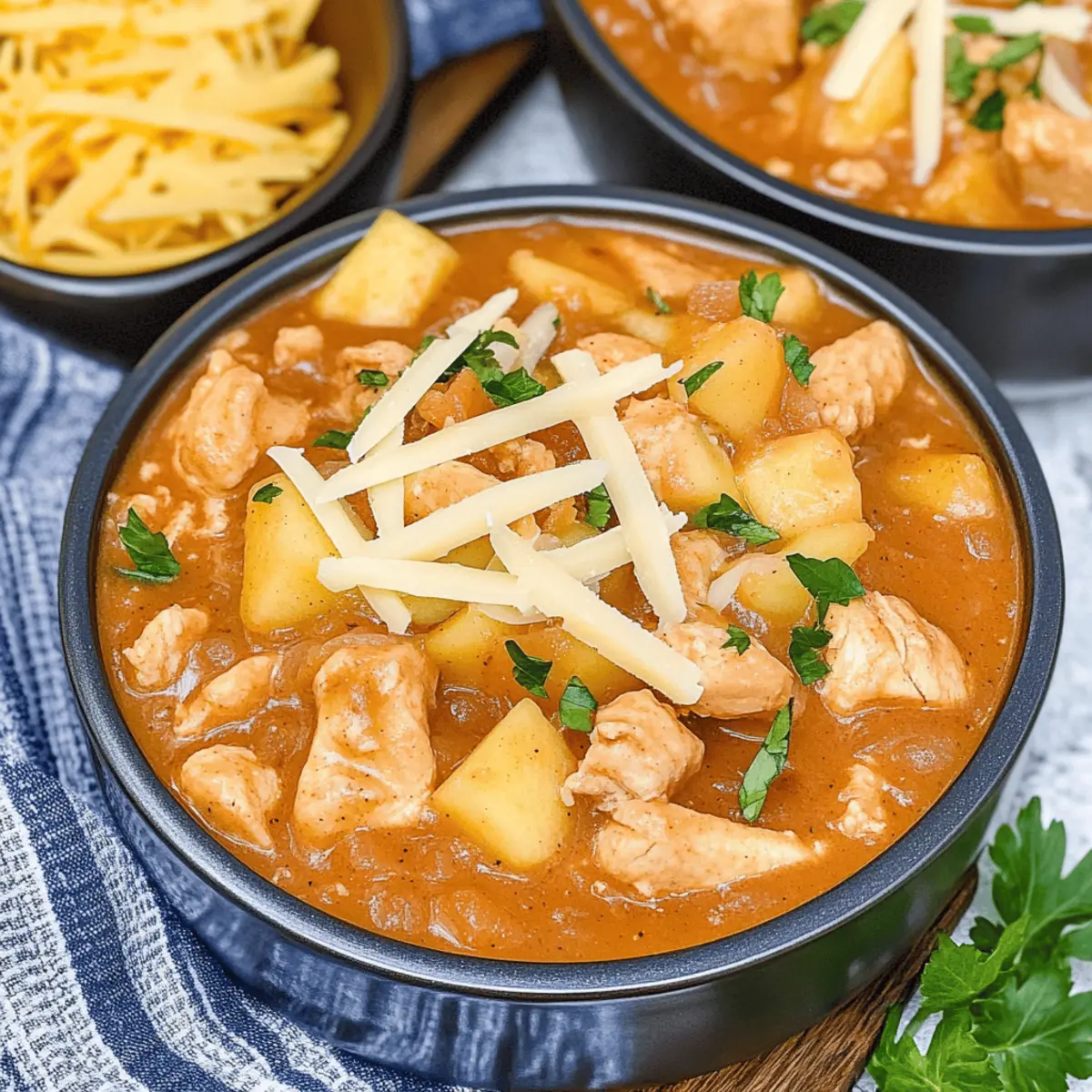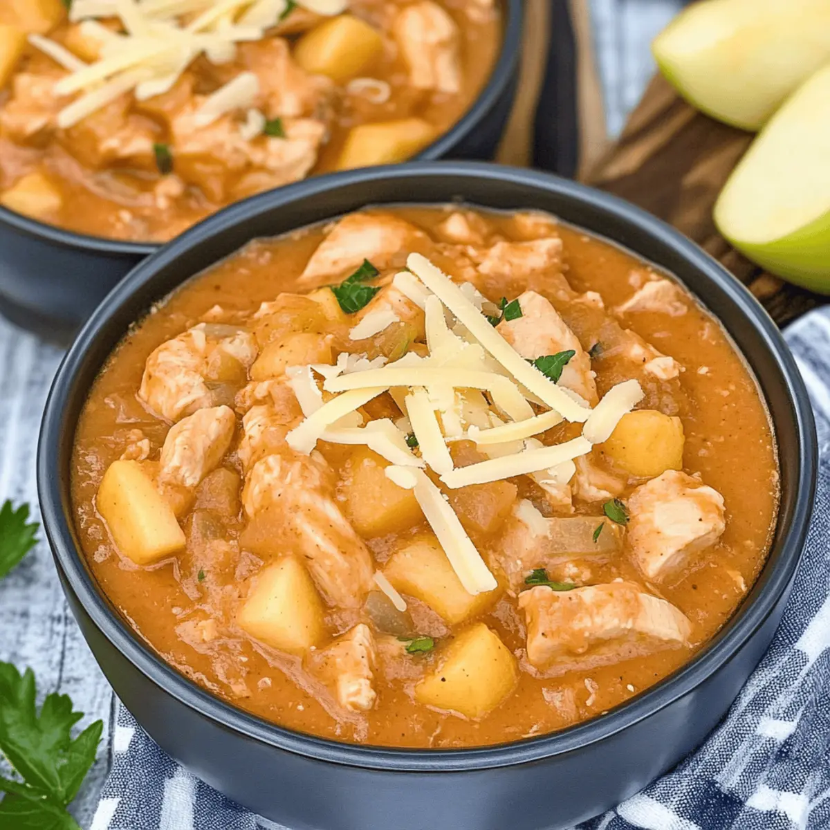 Jump to Recipe Print RecipeAs autumn kisses our homes with its crisp embrace, there’s nothing quite like warming up with a bowl of hearty chili. My White Cheddar Apple Chicken Chili combines the rich, savory flavors of traditional chili with a touch of seasonal sweetness from apples, making it a delightful comfort food option. This dish is not only quick to prepare—perfect for busy weeknights—but also offers a creamy texture that’s sure to please everyone at the table. Whether you’re looking to impress guests at a potluck or simply craving a cozy meal, this recipe is a unique twist that transforms a classic favorite. Are you ready to spice up your dinner routine and savor the season’s best? Why is This Chili a Must-Try? Unique Flavor Fusion: The combination of white cheddar and apples creates a delightful balance of savory and sweet that elevates this chili beyond the ordinary. Quick and Easy: This dish is perfect for those busy weeknights; it comes together in just 30 minutes, allowing you to enjoy a hearty meal without the fuss. Comfort Food at Its Best: Packed with tender chicken, creamy texture, and a hint of seasonal charm, this chili will warm your heart and fill your stomach. Versatile Options: Feel free to get creative! Substitute the chicken with your favorite vegetarian alternative or add in extra veggies for a unique twist to this comforting classic. Crowd-Pleasing Appeal: Whether served at family dinners or festive gatherings, this dish promises to impress even the pickiest eaters with its delightful flavors and inviting aroma. White Cheddar Apple Chicken Chili Ingredients For the Chicken Chili Chopped Rotisserie Chicken – The main protein providing flavor; grilled or baked chicken works well as a substitute. Olive Oil – Essential for sautéing ingredients and enhancing the overall flavor; can swap for vegetable oil if preferred. Chili Powder – Adds warmth and depth; adjust to your spice preference for a personalized kick. Ground Cumin – Infuses an earthy note; feel free to use coriander if you want a different flavor profile. Apples (peeled and chopped) – Contributes natural sweetness and texture; opt for firm varieties like Granny Smith to hold up in cooking. White Onion (diced) – Introduces aromatic sweetness; shallots can serve as a great alternative. Butter – Sets a rich base for the chili; margarine is a reliable dairy-free swap if needed. Flour – Thickens the chili beautifully; cornstarch is a gluten-free option to consider. Chicken Broth – Lends moisture and richness; vegetable broth offers a lighter alternative if desired. Half & Half – Adds a luscious creaminess; you can replace it with heavy cream for a richer taste or milk for a lighter option. Cannellini Beans (drained) – Delivers protein and texture; great northern beans can be used interchangeably. Shredded Mexican Blend Cheese – Melts beautifully on top, adding a delicious richness; cheddar or Monterey Jack work well if preferred. Salt & Pepper – Classic enhancers for flavor; adjust according to your taste preferences. Embrace the comfort of this White Cheddar Apple Chicken Chili by gathering these ingredients and bringing warmth to your dinner table! Step‑by‑Step Instructions for White Cheddar Apple Chicken Chili Step 1: Sauté the Base In a large Dutch oven, heat 2 tablespoons of olive oil over medium heat. Once shimmering, add the chopped apples and diced white onion. Sprinkle in 1 tablespoon of chili powder and ½ teaspoon of ground cumin. Cook for 6-8 minutes, stirring occasionally, until the apples and onions are softened and fragrant, creating a delicious aromatic base for the White Cheddar Apple Chicken Chili. Step 2: Set the Mixture Aside Carefully remove the sautéed apple-onion mixture from the pot and transfer it to a bowl. This step allows the flavors to meld while freeing up the Dutch oven for the next stage. Keep the pot over medium heat to maintain cooking temperature, ensuring a seamless transition to the next part of your chili preparation. Step 3: Create a Roux In the same pot, melt 2 tablespoons of butter over medium heat. Once melted, whisk in ¼ cup of flour to create a roux, cooking it for about 1 minute to eliminate the raw flour taste. This roux will help thicken your White Cheddar Apple Chicken Chili and give it a creamy base. Stir continuously until the mixture is bubbly and slightly golden. Step 4: Add Broth and Cream Gradually pour in 4 cups of chicken broth while whisking continuously to prevent lumps from forming. Stir until the mixture is smooth and well combined. Then, add in 1 cup of half & half, cooking for an additional 3-5 minutes until the mixture thickens and begins to bubble gently. The result should be a rich and creamy chili base. Step 5: Incorporate Chicken and Beans Next, add 2 cups of chopped rotisserie chicken and the sautéed apple-onion mixture back into the pot along with 1 can of drained cannellini beans. Stir everything together until evenly combined. The chicken and beans will enrich your White Cheddar Apple Chicken Chili with protein and texture, creating a hearty meal. Step 6: Stir in Cheese Slowly mix in 1 cup of shredded Mexican blend cheese, stirring constantly until it’s fully melted and incorporated into the chili. If the chili seems too thick, feel free to add a bit more chicken broth to reach your desired consistency. This step adds a creamy cheesiness that beautifully complements the sweetness of the apples. Step 7: Final Seasoning and Serve Taste your White Cheddar Apple Chicken Chili and adjust the seasoning with salt and pepper as needed. Serve hot in bowls, garnished with your favorite chili toppings such as chopped cilantro, diced avocado, or a dollop of sour cream. This comforting dish is perfect for warming up on chilly evenings, inviting you to dig in. How to Store and Freeze White Cheddar Apple Chicken Chili Fridge: Store leftovers in an airtight container for up to 4 days. As the chili cools, it 